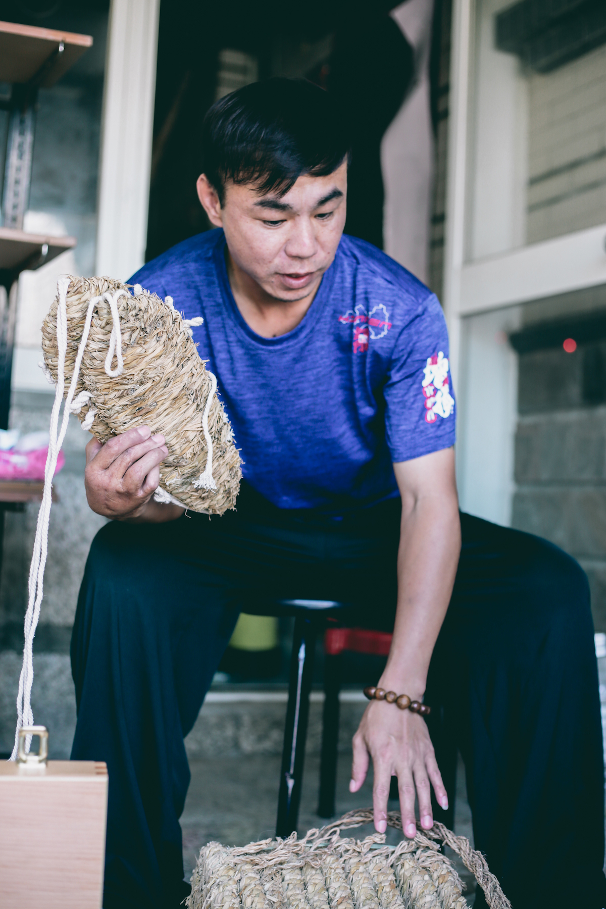 這時,時間已經來到下午四點,還沒來得及休息,蔡貽龐開始檢查起每位神將的服裝、道具。緊接著集合團員們開始出陣前最後的演練,準備著一年一度的浯島城隍季四境遶境的登場。
