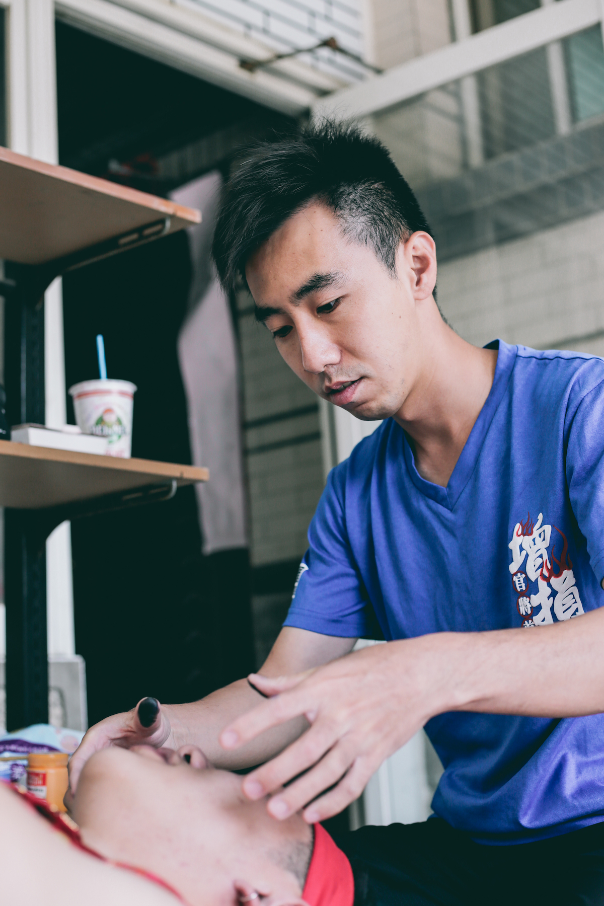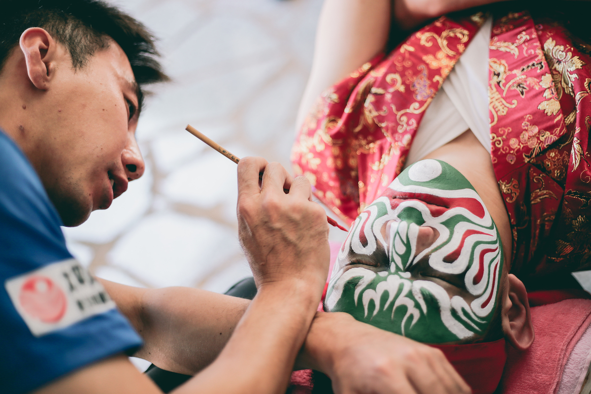 出陣當天,晚上六點才開始的四境遶境,在一大早,蔡貽龐就帶領著昊天另一名面師莊宗翰開始了陣頭開臉的工作。
